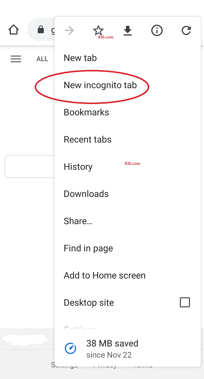 لكن ما يهمك أنت هو الضغط على الخانة المكتبوب فيها “علامة تبويب جديدة للتصفح المتخفي” اذا كنت تستعمل العربية في الهاتف، واذا كنت تستعمل الانجليزية فستجد  New incognito tab  واذا كنت تستعمل الفرنسية ستجد Nouvel onglet de navigation privée