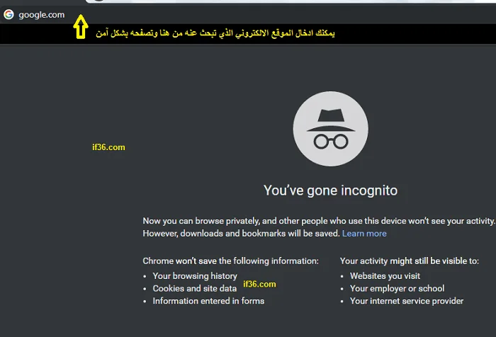 على العموم عندما تضغط على خانة التصفح المخفي ستظهر نافذة مخفية يمكنك الدخول من خلالها الى أي موقع وأنت مطمئن بأنهم لن يحتفظوا ببياناتك.
